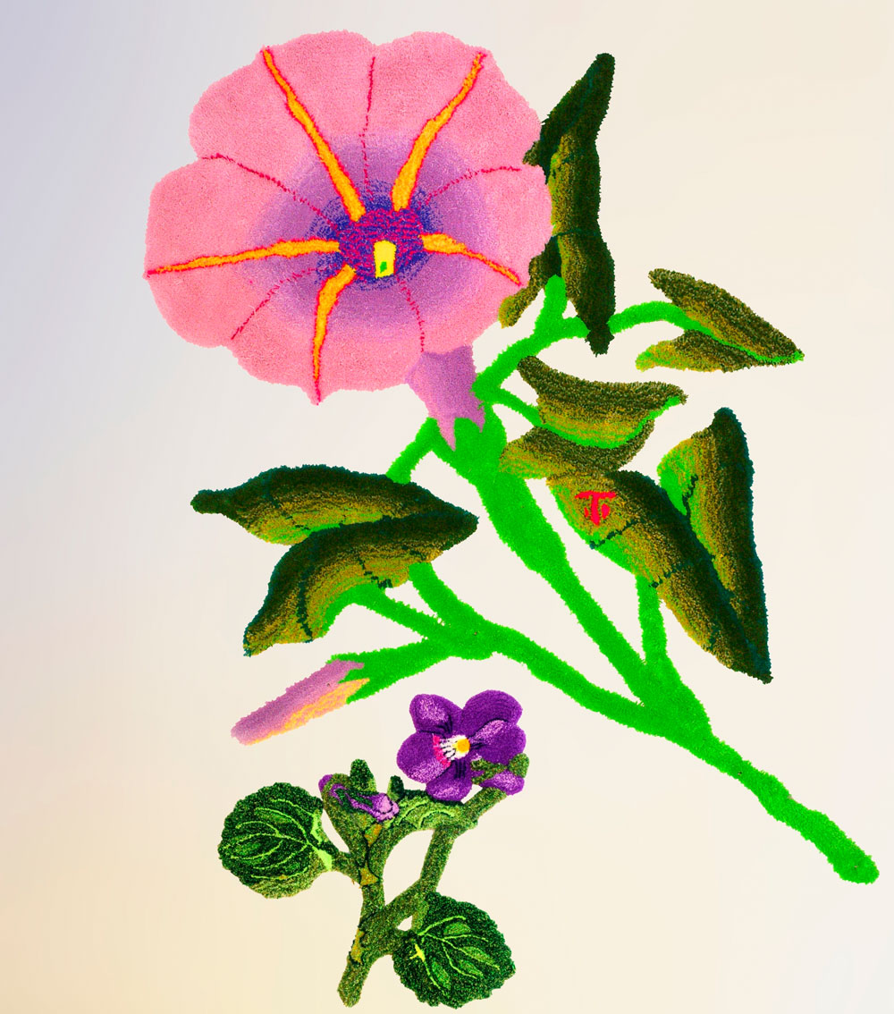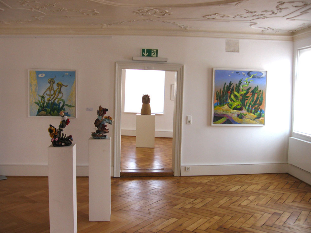 Der künstlerische Bogen spannt sich von Utamaros eleganten Holzschnitten um 1800 über Ute Litzkows starkfarbigen Aquarellen, Adaptionen nach Hokusais Holzschnittzyklen, bis zu den poppigen Objektplastiken des Chinesen Yi Zheng Lin aus den letzten Jahren. Hans Bäurle versteckt in seinen Bildwelten surreal figürliche Motive in klassischer Ölmalerei. Susanna Taras großformatige Pflanzenobjekte in irisierenden Farben feiern das Leben mit floraler Kraft.