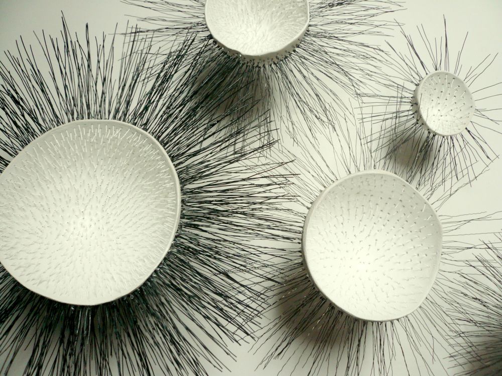 Dieser Satz von Ernst Bloch war vor vielen Jahren die Initialzündung zu dem Entschluss, den Faden als hauptsächliches Material auszuwählen und ihn auf seine künstlerische Verwendbarkeit hin auszuloten.Er spielt manchmal eine Haupt- manchmal eine Nebenrolle, sprießt und durchdringt, schlängelt, schreibt und beschreibt, gräbt sich ein in Papier, in Stoffe verschiedenster Art, gerät zu einem Dickicht von real existierenden Fäden, bleibt im Status ständiger Veränderung, verhilft durch das immerwiederkehrende Nähen „auf der Stelle“ – fast bis zur Zerstörung des Bildträgers - dem Papier zu dreidimensionalen Ausbuchtungen, verlässt die Zweidimensionalität und dehnt die Grafik in den Raum hinein, verbindet Illusion und Realität. „Vom natürlichen Verhalten“, der serielle Titel der Fadenzeichnungen, versucht, das Verhalten des künstlerisch benutzen Materials analog zur Natur und deren existentiellen Strategien zu beschreiben.Sowohl als alleiniges Forschungsobjekt als auch im Zusammenwirken mit anderen Materialien macht er auch vor gesellschaftspolitischen Themen nicht halt. Die Idee des gestrickten Blumenfelds entstand aus Erfahrungen durch die Arbeit mit obdachlosen Menschen. Die Teilhabe an gemeinsamer künstlerischer Arbeit, die Langsamkeit des Vorankommens als Widerpart zu dem Effizienzverhalten in unserer Zeit, die Möglichkeit des meditativen Tuns und der Reflektion, die damit verbundene veränderte Selbstwahrnehmung bildeten die Basis für dieses Projekt, und so entstand mit Unterstützung von Frauen von drinnen (JVA) und draußen ein 444 teiliges Feld der Erinnerung, der Mahnung aber auch der Hoffnung – die letzte Blüte trägt ein grünes Blatt.