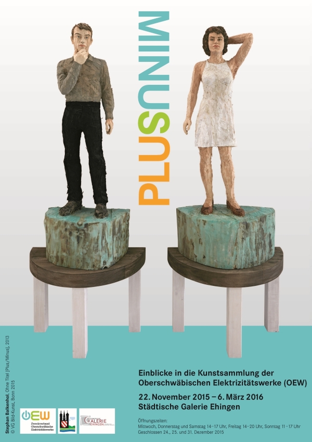 Plus/Minus – so lautet der Arbeitstitel, den der renommierte Bildhauer Stephan Balkenhol dem Skulpturenpaar gegeben hat, das er im Jahr 2013 für den Zweckverband Oberschwäbische Elektrizitätswerke (OEW) geschaffen hat. Das Begriffspaar „Plus/Minus“ steht für elektrische Spannung. In Balkenhols Skulpturenpaar ist diese physikalische Größe übertragen auf die menschliche Sphäre; es geht um die Polarität von Mann und Frau.