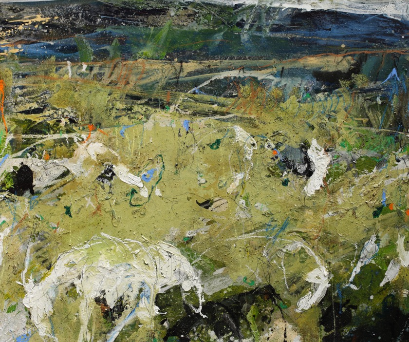 Im Gegensatz zu diesen methodischen, klar strukturierten Arbeiten steht die Malerei von Claudia Tebben aus Gelsenkirchen. Würde man Claudia Tebben beim Malen beobachten, kämen einem sofort die Klischees über moderne Kunst in den Sinn. Sie bringt die Farben expressiv und spontan, unter Einsatz ihres ganzen Körpers, auf die Leinwand. Damit steht sie in der Tradition des Informel, bzw. Action Painting, also Kunstrichtungen, die in den 60er Jahren entwickelt wurden. Es sind ähnlich willkürliche, chaotische, oft gewalttätige Kräfte, die auch unsere Natur geformt haben- als Vulkaneruptionen, Erdbeben, Stürme, Meeresbrandung, Erosion. Und solche Assoziationen möchte Claudia Tebben in den Betrachtern auslösen. Das oberflächliche Chaos ihrer Gemälde ist nur scheinbar. Ihre tiefere Struktur gründet auf einer meisterlichen Beherrschung des malerischen Handwerks, den Regeln der Landschaftsmalerei, der Raumdarstellung, der Bildkomposition und vor allem einer einfühlsamen Beobachtung von Naturphänomenen wie Wolken, Himmelsstimmungen, Bergstrukturen, Meereswellen, Oberflächentexturen. So formen sich diese malerischen Eindrücke im Gehirn der Betrachter zu unglaublich vielschichtigen, lebendig pulsierenden Landschaftsräumen, bevölkert mit seltsamen Lebewesen und Organismen, in denen man auch nach langem Betrachten immer Neues entdeckt.